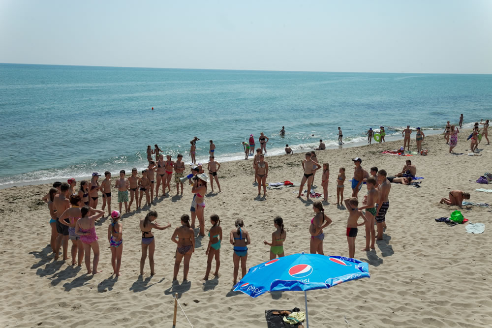 - Власний пляж – пляж знаходиться за 100 метрів від корпусів, там є рятувальна служба. На пляжі надаються безкоштовно тенти.