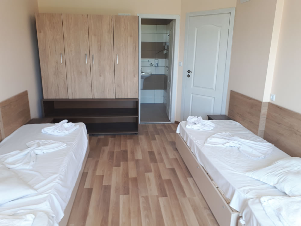 -Два однотипні корпуси, розташовані протилежно основному корпусу, кожен з яких має 8 номерів по 5 ліжок, 12 номерів по 4 ліжка та 4 номери по 3 ліжка або всього 100 ліжок у кожній будівлі.